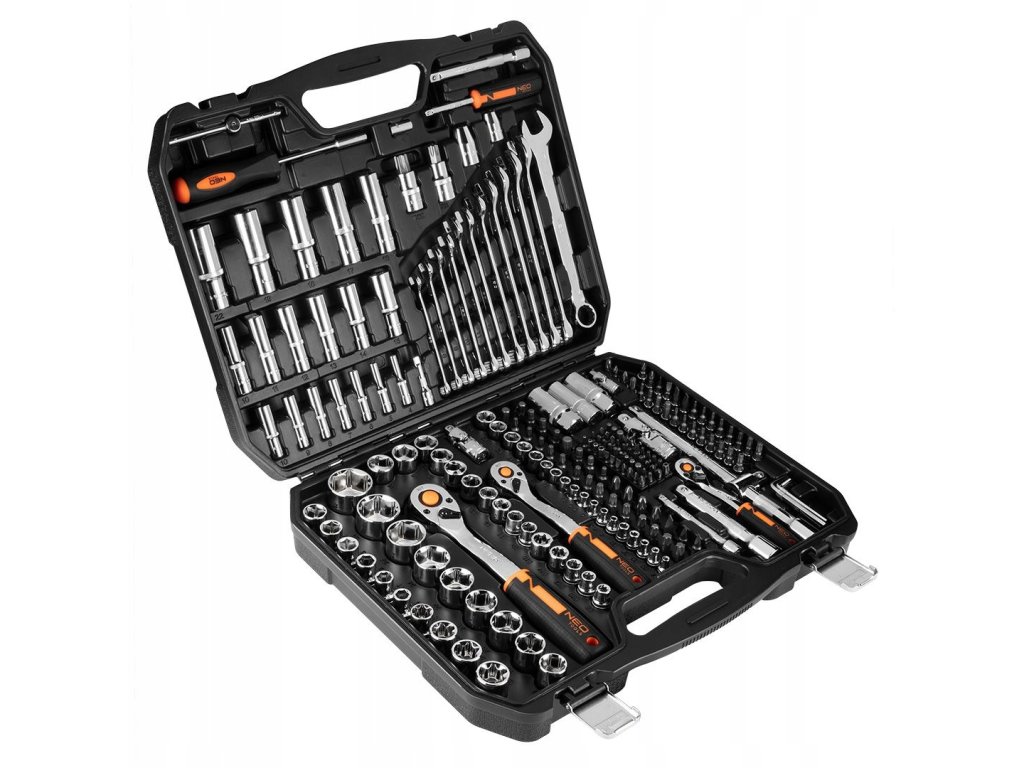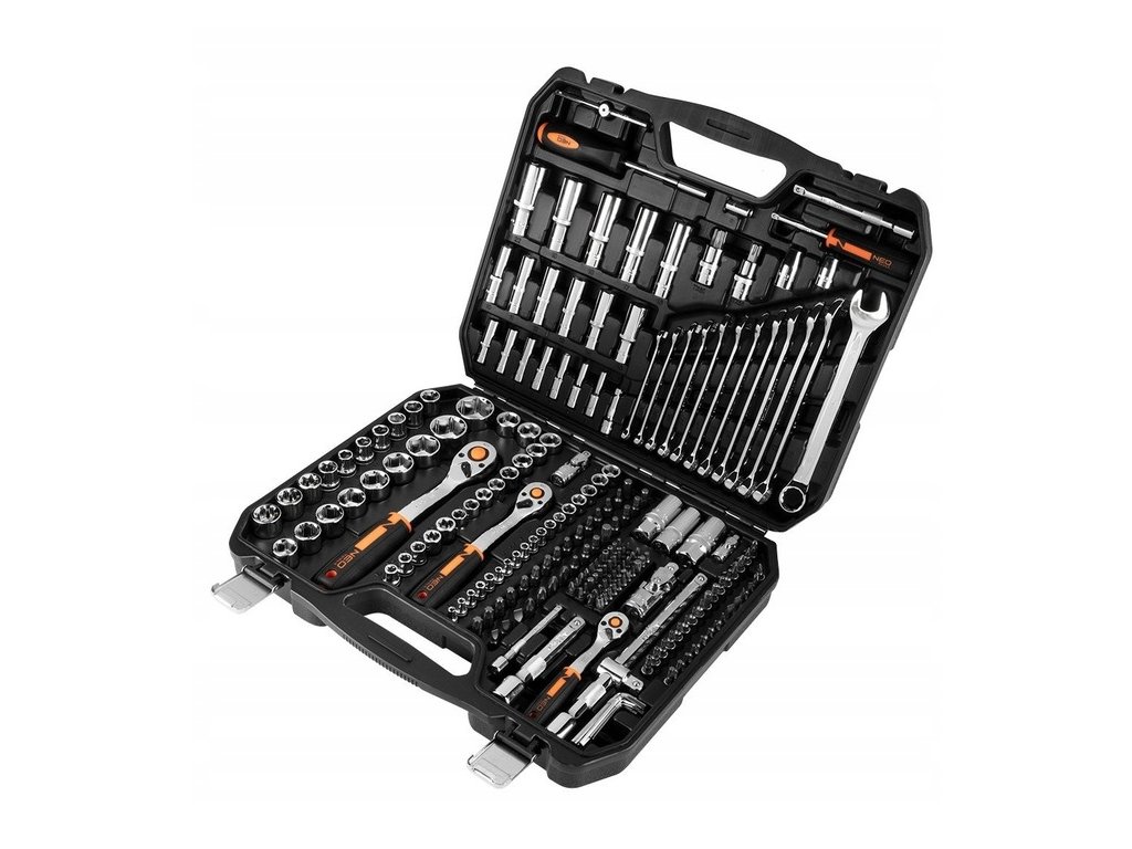 - Sada nástrčných kľúčov Neo Tools 10-076 obsahuje 219 kusov vyrobených z vysoko kvalitnej chrom-vanadiovej ocele